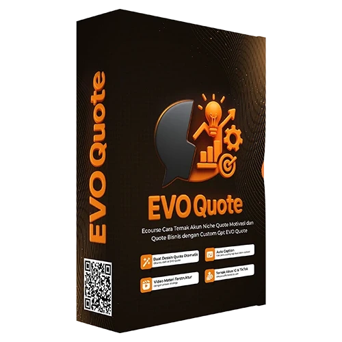 Ecourse ini dilengkapi dengan Software Evo Quote, yaitu Custom GPT yang dapat otomatis membuat desain quote + caption secara instan.